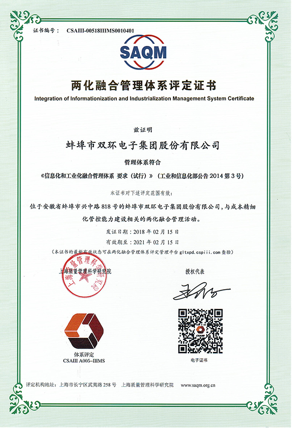两化融合管理体系评定证书